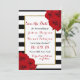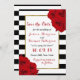 Den moderna lyxen bröllop-samlingen i chic har en klassisk svart och vit rand-bakgrund som accentueras med vackra ruby röd ros och en faux guld foil ram. Dessa kort är lätta att anpassa och kommer att vara perfekten "spara datumet" för alla bröllop, möhippor, födelsedagsfester, förlovning firande eller andra särskilda tillfällen.