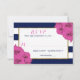 Den moderna lyxen bröllop-samlingen i chic har en klassisk marin blå och vit rand-bakgrund som accentueras med vackert rosa ros och en faux guld foil ram. Dessa OSA kort är lätta att anpassa och kommer att vara perfektens svarskort för alla bröllop, möhippor, födelsedagsfester, förlovning firande eller andra särskilda tillfällen.