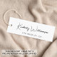 Kläder för elegant och chic, tillbehör, smycken, boutique osv., vit märkre med etikett med ett minimalistiskt utseende med ditt namn eller varumärke i en snyggt som namnteckning skript. Lägg till ytterligare text under och på baksidan i enkel modern typografi.