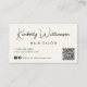 affärskort med chic light kräm som visar ditt namn eller varumärke i ett modernt namnteckning skript. Lägg till din affärstyp eller titel i ren, enkel text, skriv in din webbplats adress för att skapa en QR-kod för kunder och klienter som ska söka efter en lista över dina produkter, tjänster, timmar osv. och lägg till ditt instagram- och facebook-användarID för kunder som ska följa efter och ansluta till dig på social-media. Du kan lägga till ytterligare information på baksidan eller lämnan tom.