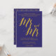 En chic rustik bröllopsinbjudan, innehåller "Mr and Mr" med skript som skriver i guld färg över koboltblå bakgrund. Alla dina detaljer är stavade i en vacker serif-typo. Den pappra perfekten för denna inbjudan är konstnären kraft, beroende på vilken typ av papper du väljer färg kan variera. Denna inbjudan är helt anpassade, font stilar, base färg, design, färg, låt mig få veta om ni har någon speciell begäran. USA:s kuvert och fodrade kuvert finns tillgängliga.