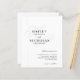 "Den här elegantens minimalistiska bröllopsinbjudan har en tidlös svartvit design med sofistikerad typografi och en subtil monogrambakgrund. Perfekt för modernt och formellt bröllop, Med sin renare utformning och sina närmare detaljer anger inbjudan perfekten för en snyggt och ett minnesvärt firande."