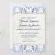 Tidlös, klassisk och ändå land chic, en modern perfekt för blått och vitt repetitionsmiddagsinbjudan till sommaren bröllop. Handmålade vattenfärgen söt sommar bröllop design. Målade med lapis, kobolt och marinblått blandat med och ett rör av grått beige. Luxe land chic stil som perfekt blandar rustik och elegant. Konst upphovsrätt, Audrey Jeanne Roberts
