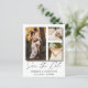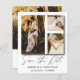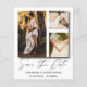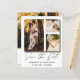Elegant och enkel spara vårt datummeddelande. Den här mallen har plats för 3 av dina favoritfoton i par i vitt med coola-handskriven calligrafi i guld. Enkel att redigera med din egen unika information.