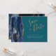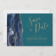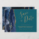 Den här eleganten är modern när du sparar datumkortet med en marinblå vattenfärgsagat gräns som trimmas med faux guld glitter. Anpassadet kombinerar handskriftsskript guld-färgad, tryckplåt och kursivt typsnitt på en tealbakgrund. Den omvända sidan har en matchande marin blå och guld-agate-design.