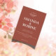 Meddela din firande i stil med den här chicen minimalistiska inbjudan till ett bröllop. Med en strukturerad layout, klassiskt serif typsnitt och en illustration av blommigtens rubrik utstrålar den här designen modern sofistikering och varm elegans. 🌼 designfunktioner: Symmetrisk och strukturerad textlayout Vita blommigtar på den översta Earthy Terracotta-bakgrunden Redigerbar text fält för enkel anpassning
