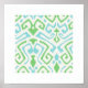 chicens moderna blåa grönt ikat mönster stamtryck poster
