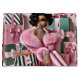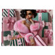 Chic kvinna omgiven av rosa och grönt Julafton presenter