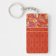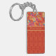 En chic Oblong Acrylic Keychain som kan anpassa sig, med Orange, Gult och Rosa Poppies på en Himlar Blue-bakgrund, som har en samordnande röd dammliknande mönster. Den här lysande utformningen av blommigten ingår i "Poppy Fält"-samlingen Posh & Painterly.