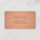 Gör ett minnesvärt första intryck med ett enkelt och elegant affärskort. Utformningen har ett handskript med snyggten stil typografi, faux kopparfoil bakgrund och modernt minimalistiskt svart rand. Presentera kontaktinformationen med chic professionell stil. Detta enkla och minimala kort är lämpligt för frilansande företagare, småföretag eller professioneller för företagskontor men är ändå trendig i tid. Det visas här som ett affärskort för hårstilist/smink-artist, men är enkelt att anpassa för vilket yrke som helst.