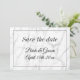 Chicens vita marmorsten sparar datumkortet bröllop. Klassdesignmall med utskrift på två sidor. Underbar för giftermål. Perfekt för att påminna gästerna om din stora dag. Formell typografi och gräns.