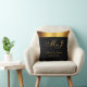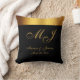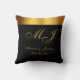 Den här chiccustom dekorativ kudde för newlyweds har ett kalligrafiskript för elegant faux guld för ditt monogrammade initialer, namn och bröllop-datum för att anpassa sig till en vanlig svart bakgrund med faux guld gräns. Bästa önskemål för bröllop och giftermål! Designad av Susan Coffey.