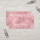 Elegantens hår- och makeup-affärskort med rosa ros faux glitter drops och elegantens kalligrafteckensnitt.