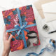 Chickadee-fåglar på grenar på blåbär på orange presentpapper