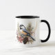 Detta är en söt mugg för vem som helst, med bilden av en liten, liten kyckling som genomborras på gräs gren med en gräs-kon och röda bär. Bakom fågeln bilder ligger en spår av en guld-snurra. Bilden upprepas två gånger på mugg, med ditt namn i svart mellan dem. En söt scen för vilken säsong som helst!