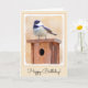 Chickadee on Birdhouse Painting Original Bird Art Kort