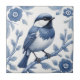 Chickadee Underbar Tit Bird Delft Blue and White Kakelplatta