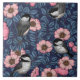 Hand drawn vector pattern with chickadee birds and pink wild roses