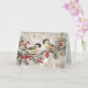 Chickadees on Evergreen with Red Berries Description: Charming Chiadees perched on an evergreen gren, surroended by red bär and snöflingor. Den mjuka gråttet-texturerade bakgrunden lägger till en vintage. Märkre: vintergröna kycklingar, rödbär snöflingor, vintage grått bakgrund, glittrande kycklingar, mjuk texturerad papper, guld-folie, röda glitter accenter, vinterfågelscen, festkycklingar, kabindecår