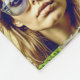 Vackra kvinnor i solglasögon med reflektioner av deras inställningar som berg, strand, musikalisk konsert, trädgård och andra slumpmässiga scener.