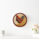 Rhode island Red Chicken Tupp står i torr gräs på en varm solnysdag. Realistisk teckning skapat från en ursprunglig oljemålning av ekvin- och vildlevande artist Crista S. Skog.