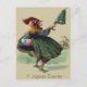 Vår skickar en Påsk hälsning till någon! Den här vintagen visar en hen-skon en Påskhare från hennes fullt i Påsk basket om Påskägg i färgad med hennes paraply.