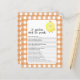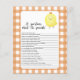 "En liten kyckling är på väg." Fira med den här tecknaden, kyckling, temat babydusch party! Söt chick med baby ansikte. Orangens bur.