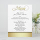 Menyer för bord för elegant bröllopmottagandet som göras i vit, med ett musikband av guld och svarten, på grunden, beklär och goldtone beläggning baksidaen av menyn. Menyn i goldtone utsmyckat grafiskt skrivar text, dekorerar det bästa av menyn. Alla vila av den svart texten är klart att personifiera för ditt bröllopmottagande. Matcha tillgängliga bröllopprodukter.