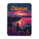 En charmerande och nostalgisk bild av Chiemsee, en picturesque sjö i Bayern, Tyskland, känd för sitt kristallklara vatten och sina sceniska omgivningar. Utformningen fångar skönheten i sjö med åsikter från Fraueninsel (Kvinnoön) och Herreninsel (ön Manar), med historiska byggnad som Frauenwörth Abbey och det stora Herrenchiemsee Palace. I en vintage stil ger konstverket upphov till en lugn atmosfär och kulturell rikedom i Chiemsee, och uppmanar tittarna att uppleva sina idylliska landskap och historiska landmärken.