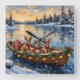 Chihuahua Christmas Boat Holiday Fyrkantig Klocka