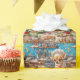 Fånga helgdag glädje att baka med den här härliga scenen med en glad kock omgiven av julgransar och festliga dekorationer. En hjärteberande firande av årstidens sötaste traditioner.