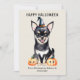 Det här hälsningskortet har en söt Tri-färg (svart, brun och vit) Chihuahua-hund som bär en häxhatt med små pumpor. Den här vattenfärgsdesignen är modern och redot är personlig. På baksidan står det "Valp-kin-krydda och allt gott", men det kan ändras om så önskas. Det är perfekten kort att skicka till vänner och familj under Halloween-säsongen!