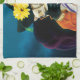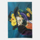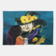 En söt asiatisk häxa som håller henne chihuahua nära medan några magiska höstdanser runt dem och lite höst löv.