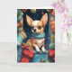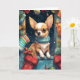 Denna vackra, handritade illustration har en liten Chihuahua som håller på att plocka ut från en julklapp, omgiven av festliga prydnadsföremål och dekorationer. Djurbeståndet är prydat med mönster som är fromma och scenen är i mjuka pastelltoner, vilket skapar en mysigt och magisk julstämning. Den råa sketchy stil lägger till en charmerande beröring, med ett vänligt ljus och ett varmt vardagsrum.