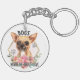 Cute Chihuahua Ljuger aldrig om Kärlek-nyckelkedjan med ett guld-geometriskt ram och blommor.