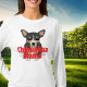 Klättra för komfort och njut av stilen med denna Chihuahua-mamma långärmade t-shirt. Designen visar en söt liten svart, tan och vit Chihuahua som ligger ner med röd text som säger Chihuahua Mama. Hund-temat design finns tillgänglig på en mängd olika skjortstilar och färger.