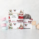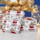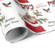 Det upprepade mönster på denna söta julomslutning papper är en bild av en liten brun Chihuahua-valp-hund som pissar ut från en röd och vit Helgdag-presentväska. Bakom honom ligger en sprit av grå och röda bär. En röd och svart bullfinkfågel kommer snart att landa. Stiliserad röd och svart buffelpläterad text säger GOD JUL och "Gott nytt år" är mörk grönt. Din egen namnteckning finns i två fält för att du ska kunna anpassa dig.