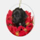 Svart, med bara lite vit, chihuahua-valp i röd jultomte dekorationer hundälskare Julens helgdag