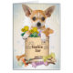 Kort för hälsning för tillfällen för Chihuahuakakaburk som presenterar den förtjusande Chihuahuavalpen som poseras över kakaburken som fylls med vovvekexar på bekläda av cardanden "som slås sönder" på insidan av kortet… som är gulligt som är roligt och ett av en snäll Friskybizpet design.