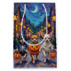 Beundransvärda Chihuahuas som är klädda i lekfulla Halloween-kostymer bär pumpkinkar medan man lurar eller behandlar under den månbelysta himmel. Denna festliga utformning belyser rasens lilla storleka, stora personlighet och livliga själ, som perfekt fångar den förevändbara roligten av Halloween-natten. En charmerande firande för hundälskare och Halloween fläkt.