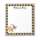 Lycklig Howl-oween! Behålla spår av dina föreställningar, trick, behandlingar eller annat på det här anteckningsblocket med den här söta Chihuahua som bär en grönt mask och en häxhatt som dekorerade med en fånig spinder. Underbar för barn av alla åldrar som kärlek Long Jackar Chihuahuas och Halloween.