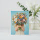 En kultiverande digital målning av en ung flicka som har en överdimensionerad bukett av levande vilda blommor, som helt täcker hennes ansikte. Bilden har en fantastisk blandning av daisy, blåklockor och andra färgstarka blommar mot en mjuk blå bakgrund, som framkallar en känsla av oskuld, glädje och naturens skönhet.