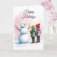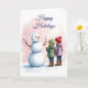 Happy Holidays Snowman Card - Children Building Snowman Winter Scene - Send warm wishes this holiday season with this charming watercolor-style card featuring two children admiring their cheerful snowman. The soft pink and blue watercolor background creates a dreamy winter atmosphere, while the elegant "Happy Holidays" script adds a touch of sophistication. Text is customizable. Perfect for spreading joy to friends, family, neighbors, and loved ones during the festive season.