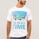 Tre röda chilipaprika på stranden. Hett solig dag, blåhav, vit sand, paraplyer och sombreros. Två paprikor drunknar under strandparaplyer, och den tredje paprikan ligger långt ned i vatten. Varje timme är en lycklig-timme på stranden. Sol, Sea, Sand, Sombrero. Lustigt anpassade t-shirt. Du kan ändra bilden och du kan ändra eller ta bort malltexten Det är Beach Time. Glöm inte att välja en annan stil, gender eller färg av skjortan.