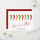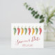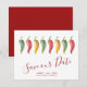 Meddela att du är förlovad med mina chilipeppar-spara-datum-inbjudningar med orden Save Our Date i en trendig typsnittsstil som frammanar känslan av handskriven text. Detta enkla kort har min originella akvarellkonst med era namn, bröllopsdatum och bröllopsplats. Baksidan på korten har en komplimenterande djupröd färg. Perfekt för latinostil-bröllop. För att se den matchande brölloppsserien och fler icke-foto-spara-datum-inbjudningar av Victoria Rigali, besök DoTellABelle på Zazzle.