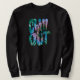 Bold, relaxed streetwear sweatshirt with a vibrant tie-dye text print that says CHILL OUT— designed for everyday comfort and confident style.