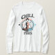Kvinna som mediterar grafik med text, "Chill Vibes" avslappnande, upplyst känsla.