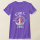Kvinna som mediterar grafik med text, "Chill Vibes" avslappnande, upplyst känsla.