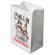 Den här söta och rustiska snögubbe-presentsäcken har ett vackert snögubbe-par i traditionella hattar och halsdukar och är sprinklad med hollier och bär med ord "Chillin" med mina snutar.