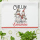 Denna söta och rustiska snögubbe kökshandduk har ett vackert snögubbe-par i traditionella hattar och scarfar och är sprinklad med hollier och bär med ord "Chillin" med mina snutar.